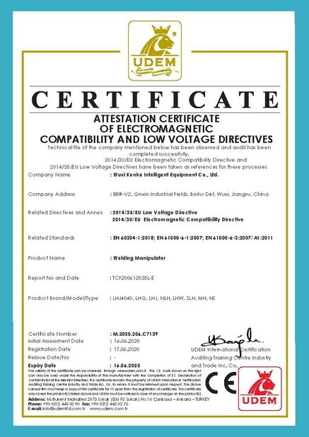 KENKE befolgt den Unternehmensgeist „des Wissenschaft und Technik schaffen Wert, Ehrlichkeit schaffen KENKE“ und die Unternehmensart „von nüchternem, von Aufrichtigkeit und von Vertrauenswürdigkeit“. Kenke Company hat mehrmals hintereinander hochwertige Ausrüstung für viele Benutzer an inländischem und im Ausland zur Verfügung gestellt. Jetzt ist KENKE die Regelungseinheit schweißender Vereinigung Chinas und die Mitgliedseinheit der China-Maschinenbau-Gesellschafts-Druckbehälter-Niederlassung.